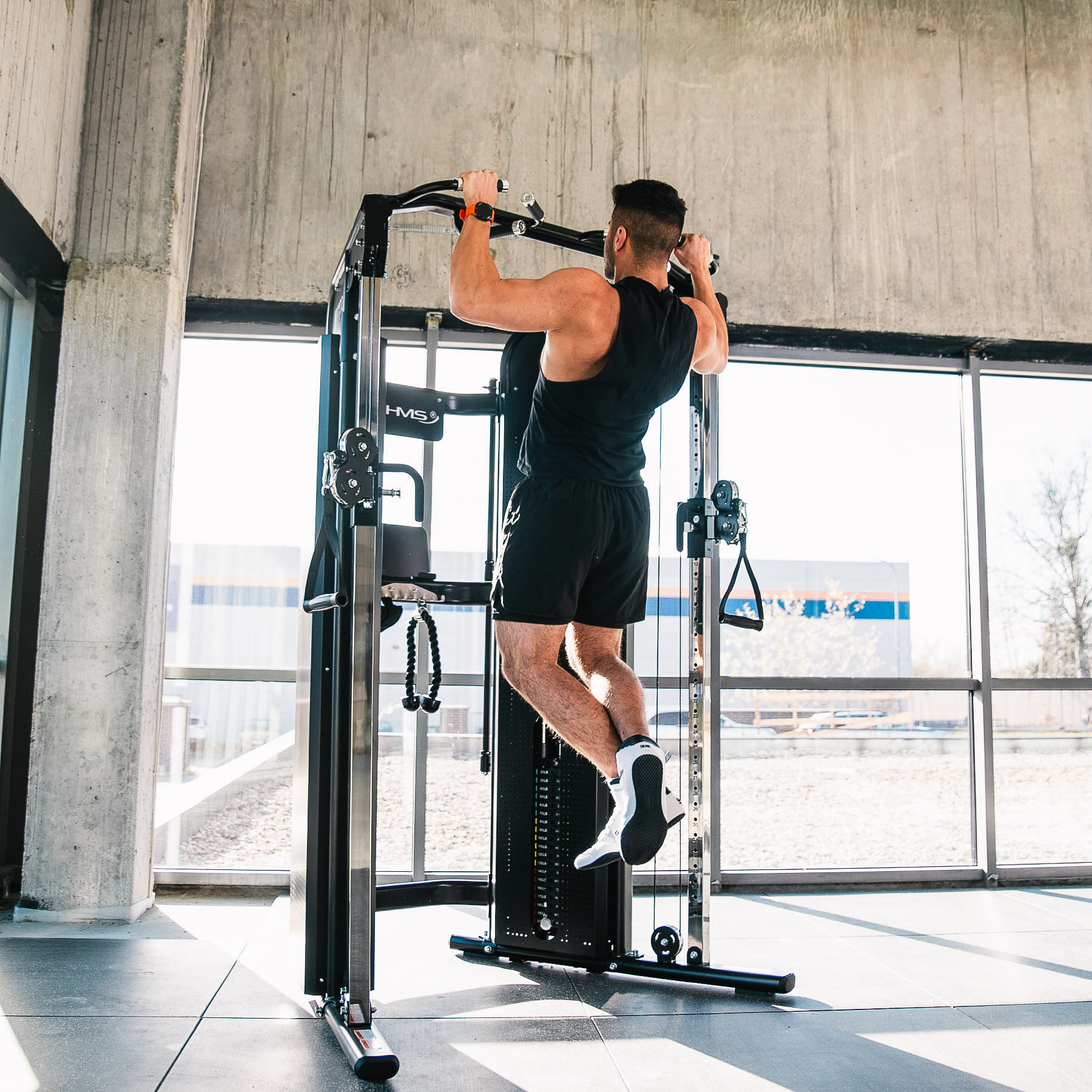 A beépített, többféle fogásmóddal rendelkező húzódzkodó rúd számos fogási lehetőséget kínál: keskeny, széles, semleges, alul/felül fogás, párhuzamos fogás, vegyes fogás és egykaros húzódzkodás.