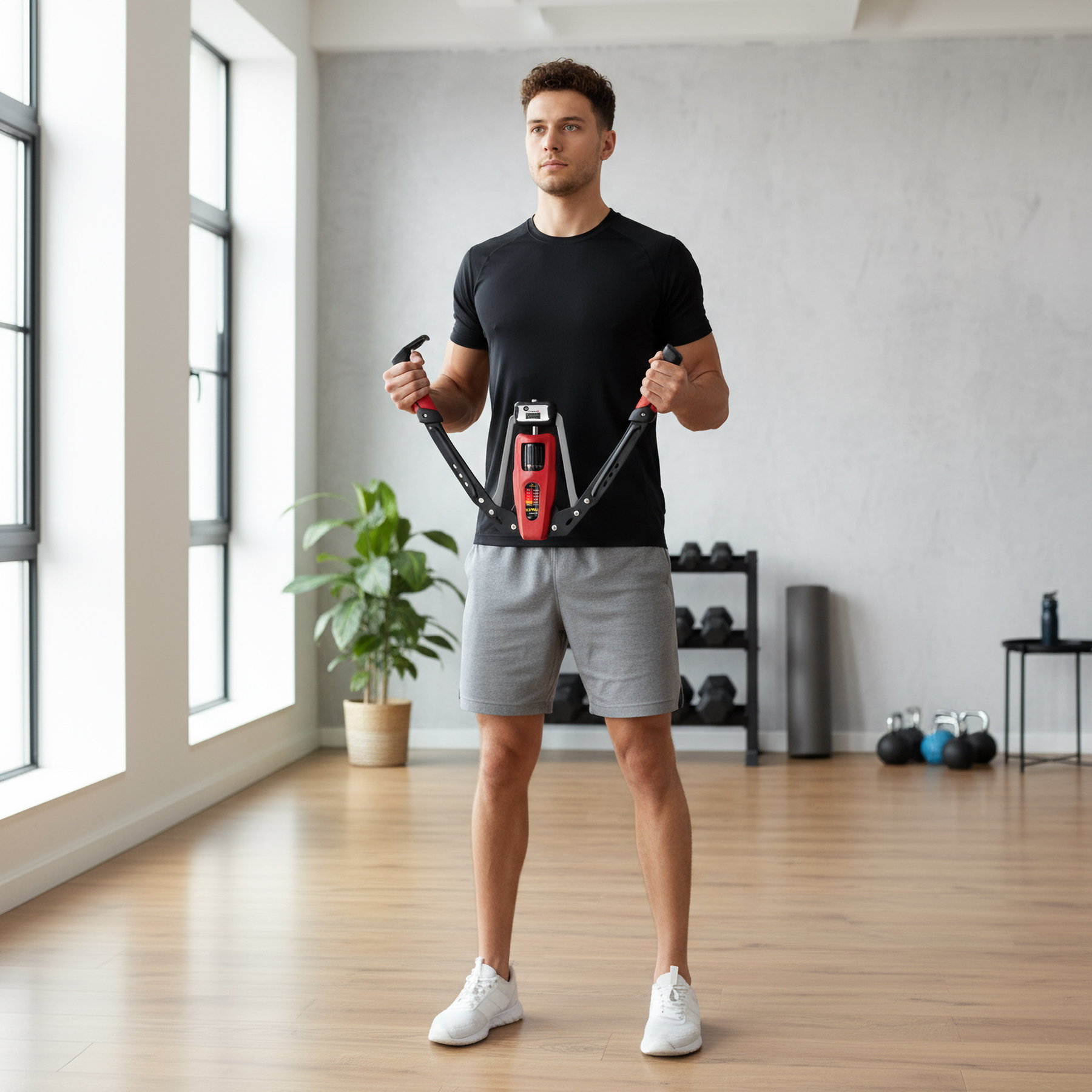 A masszív háromszög alakú váz zárt hidraulikus rendszerrel működik, így biztosítva a sima ellenállást és a pontos irányítást. A biztonsági retesz megakadályozza a véletlen kinyílást, míg a csúszásgátló TPR markolatok szilárd fogást garantálnak. Másodpercek alatt összecsukható, és könnyedén elfér egy fiókban vagy edzőtáskában.