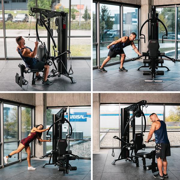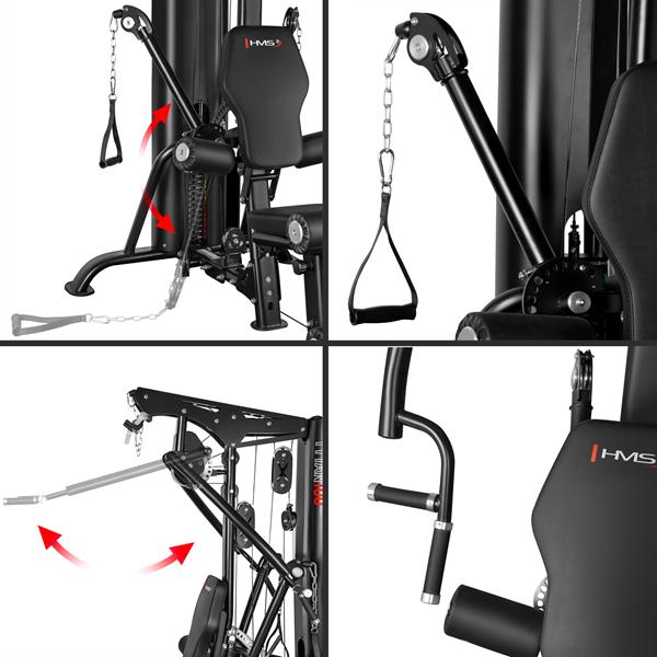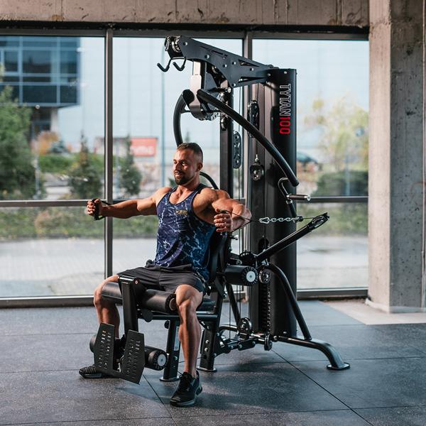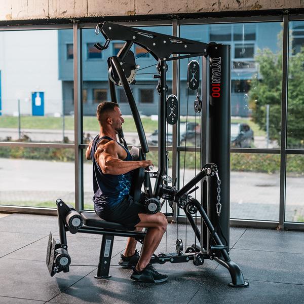 A HMS TYTAN 100 egy teljesen professzionális célú, többfunkciós edzőgép, amelyet intenzív használatra terveztek klubokban, szállodákban és személyi edzőterekben. A 90 kg-os súlycsomag 1:1 kábelarányával valósághű ellenállást biztosít, míg a széles beállítási tartomány lehetővé teszi, hogy a berendezést pontosan a felhasználó testéhez igazítsa.Főbb jellemzők90 kg-os súlycsomag, 1:1 kábelarány – az érzékelt terhelés megegyezik a tényleges terheléssel; ideális a fokozatos erőnléti edzéshez.Kereskedelmi kivitel – nagy teherbírású váz, súlycsomag burkolat és acél kábelek.Többfunkciós – magas és alacsony csiga, mellizom-gyakorló/nyomókarok, lábnyújtó állomás.Széles körű állíthatóság – ülésmagasság, háttámla dőlésszög és karpozíciók; különböző magasságokhoz és mozgástartományokhoz illeszkedik.Tartozék fogantyúk mellékelve – két egykaros D-fogantyú, bokapánt, karabinerrel ellátott lánc, rövid egyenes rúd, hosszú, szögletes lat rúd.Teljes test edzés – kompakt és hatékonyHát: lat pulldown a magas csigán; ülő evezés az alacsony csigán, a lábak a lemezre támaszkodva.Mellkas: ülő mellkasnyitás; mellkasnyomás a karokon, többféle fogási lehetőséggel. Vállak és karok: egykaros kábeles evezés, bicepsz hajlítás és tricepsz nyújtás. Lábak: ülő lábnyújtás. Farizmok és abdukció/addukció: kábeles gyakorlatok bokapánttal – abdukciók, hátsó combizom/farizom rúgások. Törzs: kábeles felülések ülve/térdelve, felülések. Ennek köszönhetően a TYTAN 100 kiválóan alkalmas fitneszklubok számára, mivel több egyfunkciós gépet helyettesít, és teljes edzéstervet tesz lehetővé anélkül, hogy állomást kellene váltani. Ergonomia és illeszkedés: puha, tartós kárpit, sima, többfokozatú beállító gombok és csúszásgátló lábtartó biztosítják a kényelmet és a stabilitást. A beállítások másodpercek alatt megváltoztathatók – ideális, ha sok tag használja a gépet. Sima mozgás és biztonság A csapágycsigákon átvezető kábelek minimalizálják a súrlódást, a zárt súlyoszlop pedig növeli a biztonságot és rendezetté teszi az edzőteret. A lengéscsillapítók és a szilárd öntött tárcsaházak csökkentik a zajt és a rezgést – ami elengedhetetlen a forgalmas létesítményekben. Kiknek ajánljuk? A TYTAN 100 azoknak a klubtulajdonosoknak és edzőknek a választása, akik professzionális, kereskedelmi célú többfunkciós edzőtermet keresnek, valamint azoknak a igényes otthoni felhasználóknak, akik értékelik a maximális funkcionalitást, a megbízhatóságot és a HMS modern kialakítását.